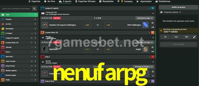 O nenufarpg oferece uma grande seleção de opções de apostas em e-sports com probabilidades competitivas